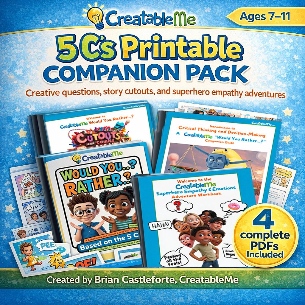 Keep the momentum going. The 5 C’s Printable Companion Pack gives you plug-and-play pages you can use at home anytime to build confidence, communication, connection, creativity, and emotional strength.